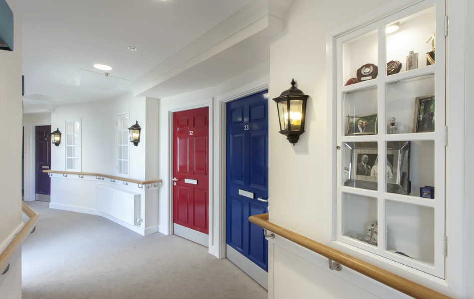 We understand that a familiar environment can be crucial for individuals with dementia. Our home is designed to minimise confusion and promote a sense of wellbeing. Features like circular corridors, and each room having a brightly coloured front door complete with a letterbox, street lamp and memory boxes containing photos and cherished keepsakes. All these thoughtful features help residents navigate and recognise their surroundings.